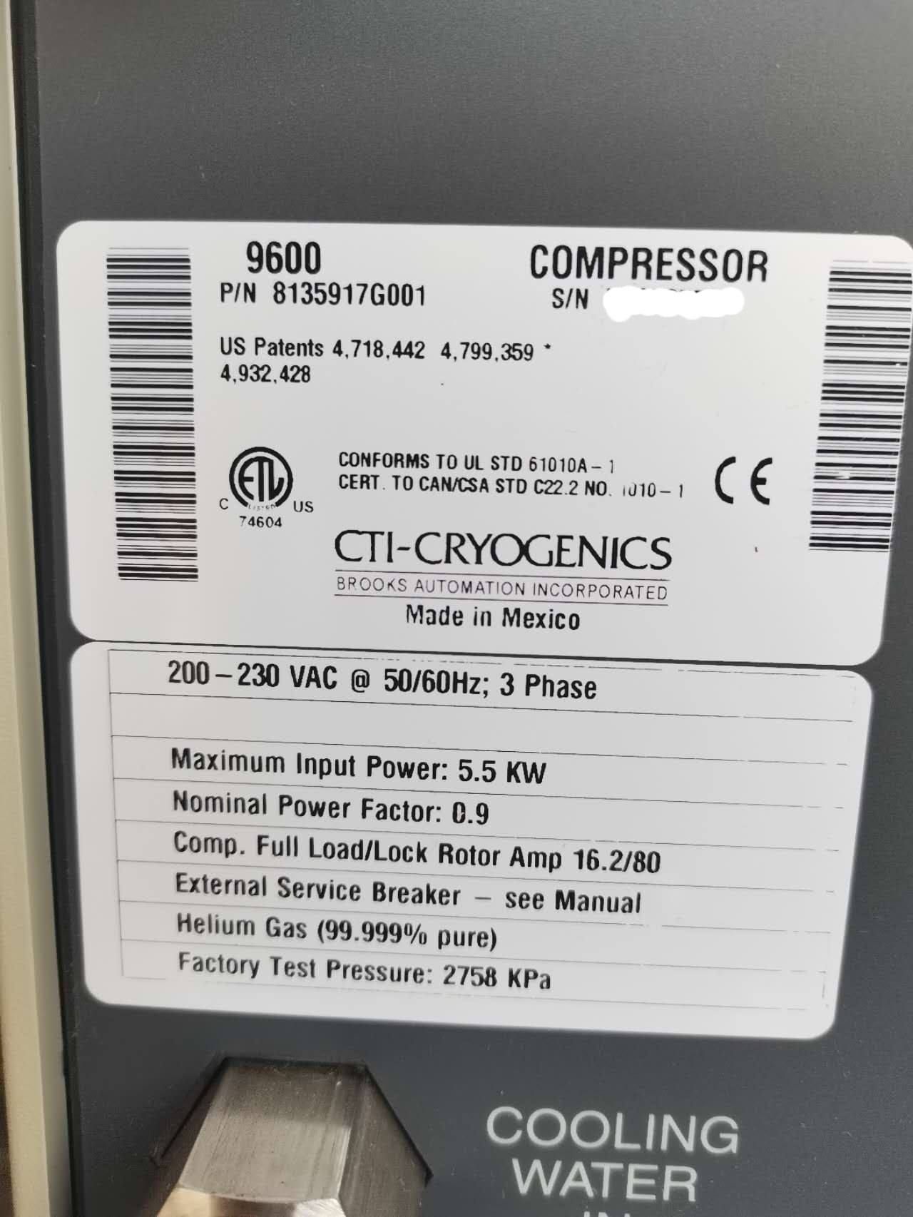 メーカー(Maker):CTI-CRYOGENICS