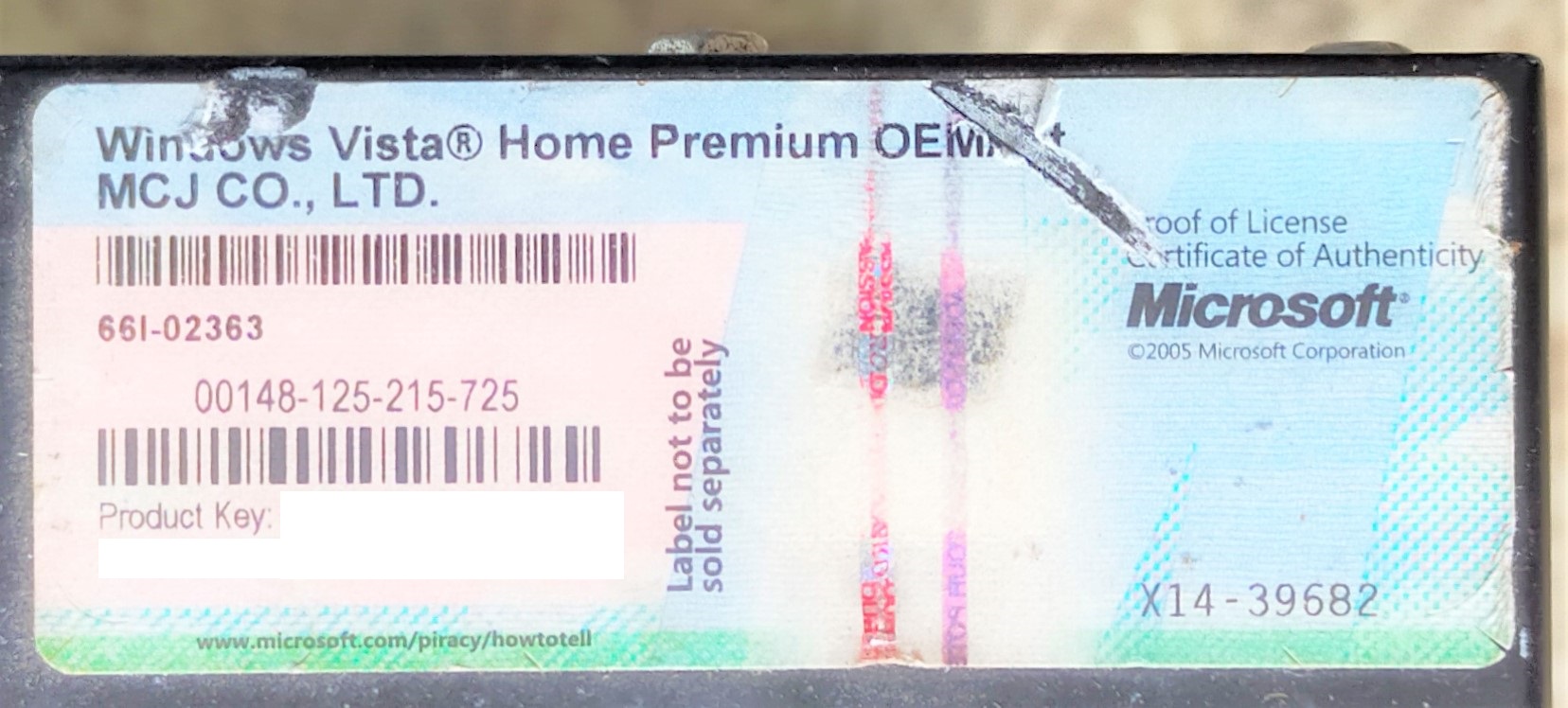 型番(Model): X14-39682 WINDOWS VISTA