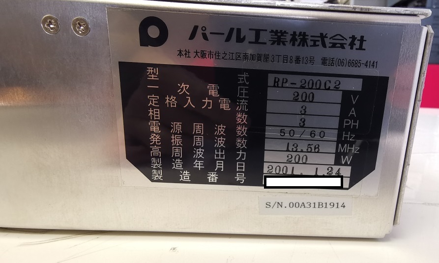 品名(Name):RF GENERATOR 13.56MHZ
