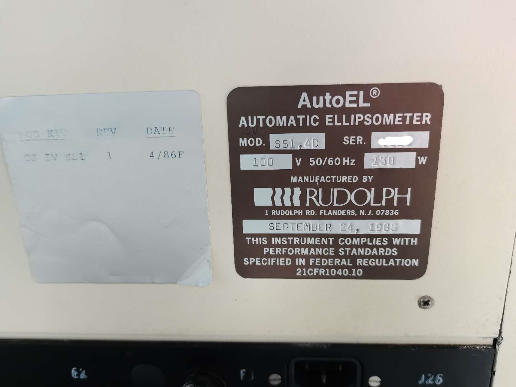 品名(Name):AUTOMATIC ELLIPSOMETER メーカー(Maker):RUDOLPH 型番(Model):SS1.4D